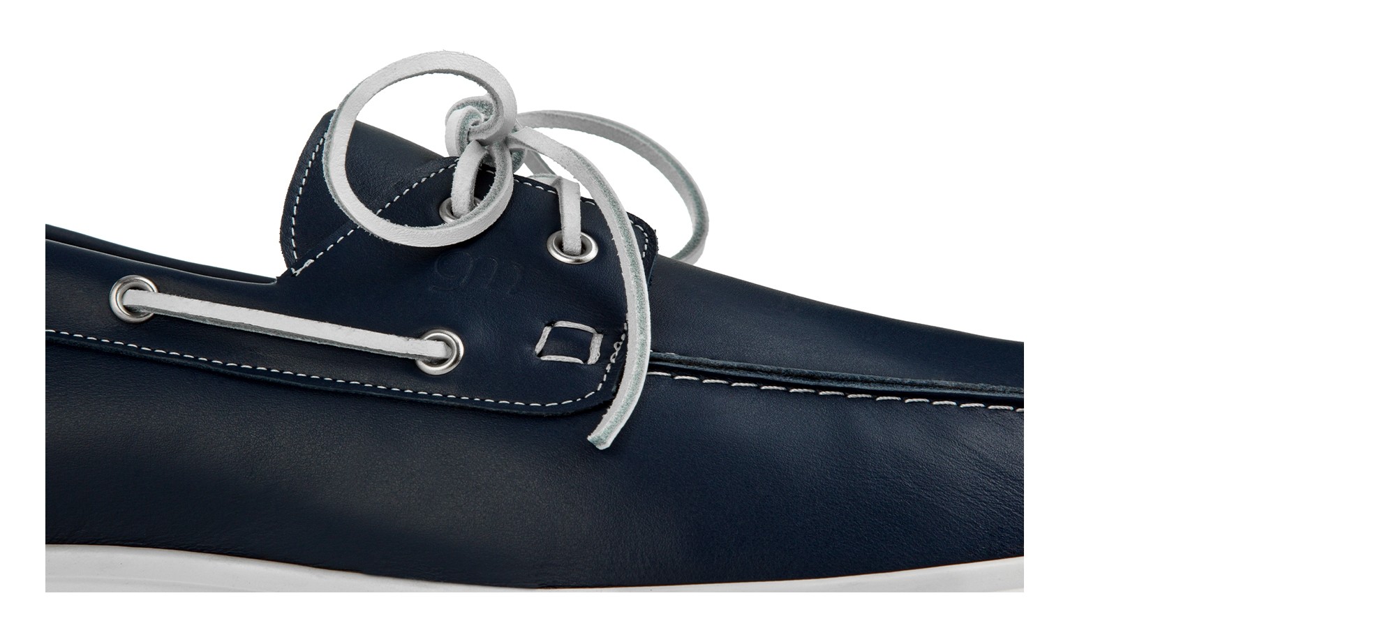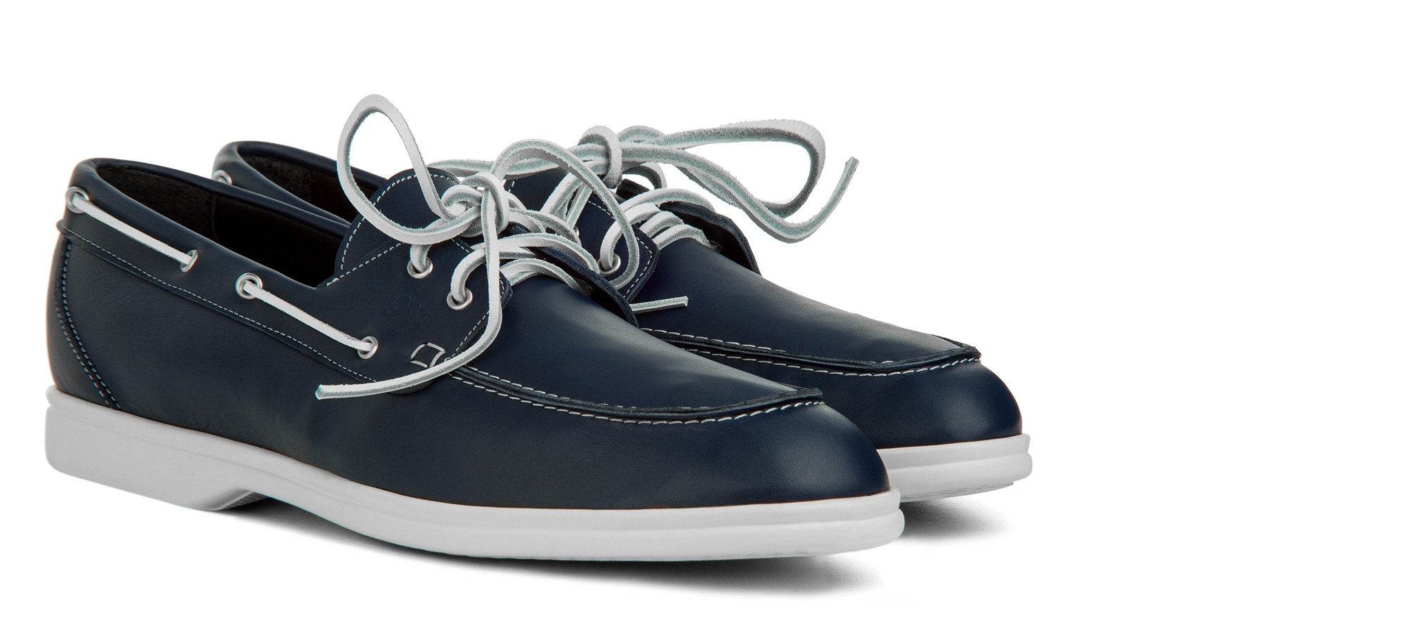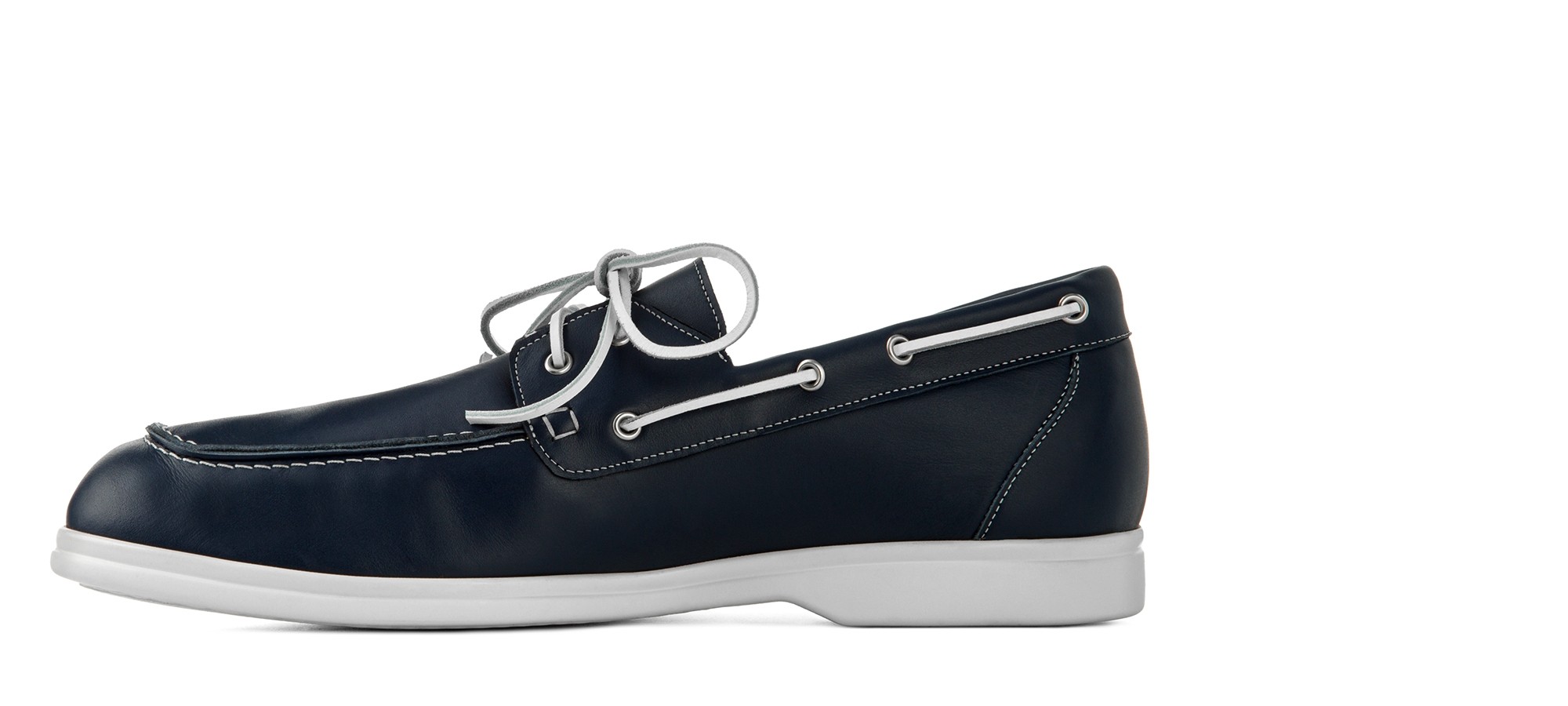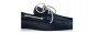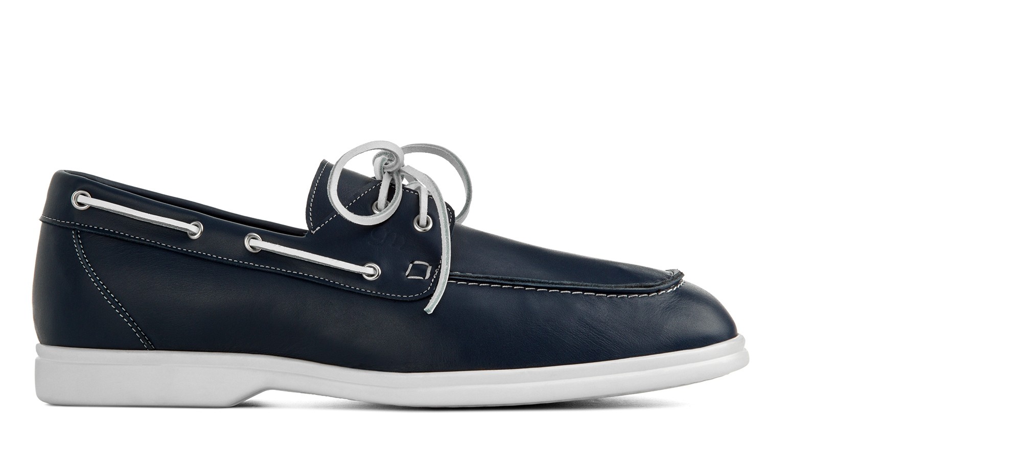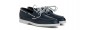 Boat loafer crafted from soft and durable blue full-grain leather. The nautical design, featuring leather laces and visible stitching, ensures comfort and an easy fit.