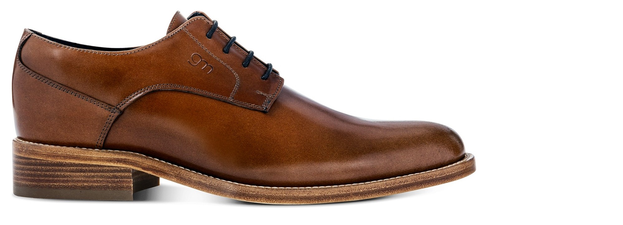 Goodyear welted elevator derby shoes handcrafted in precious Horween Shell Cordovan leather featuring a unique brown nuance and sole in genuine leather.