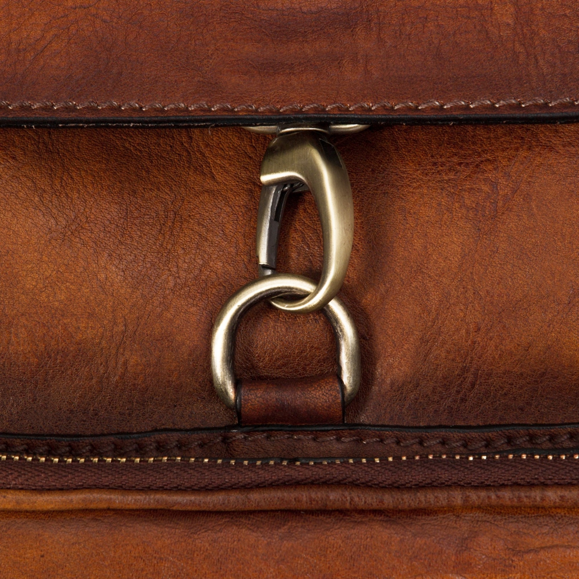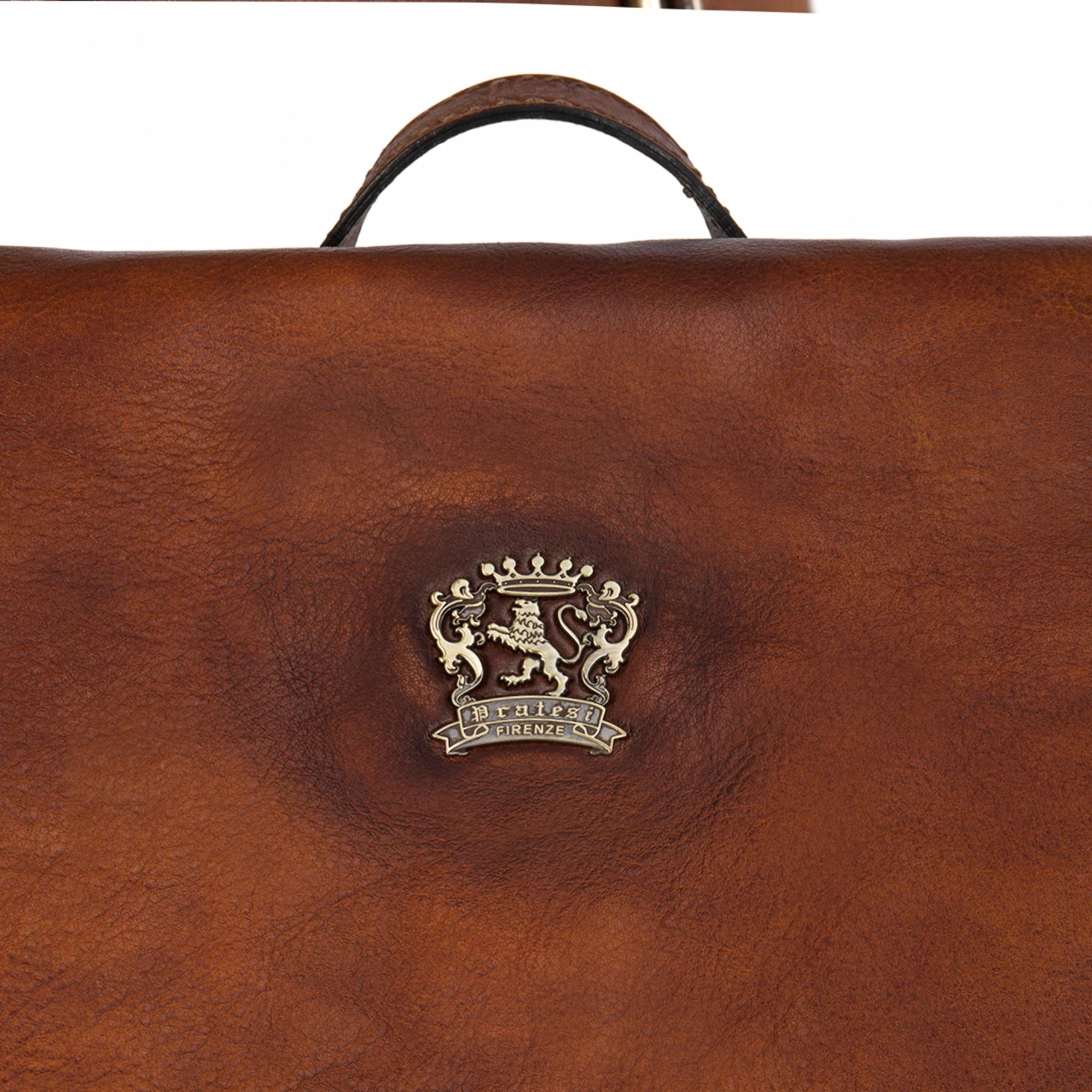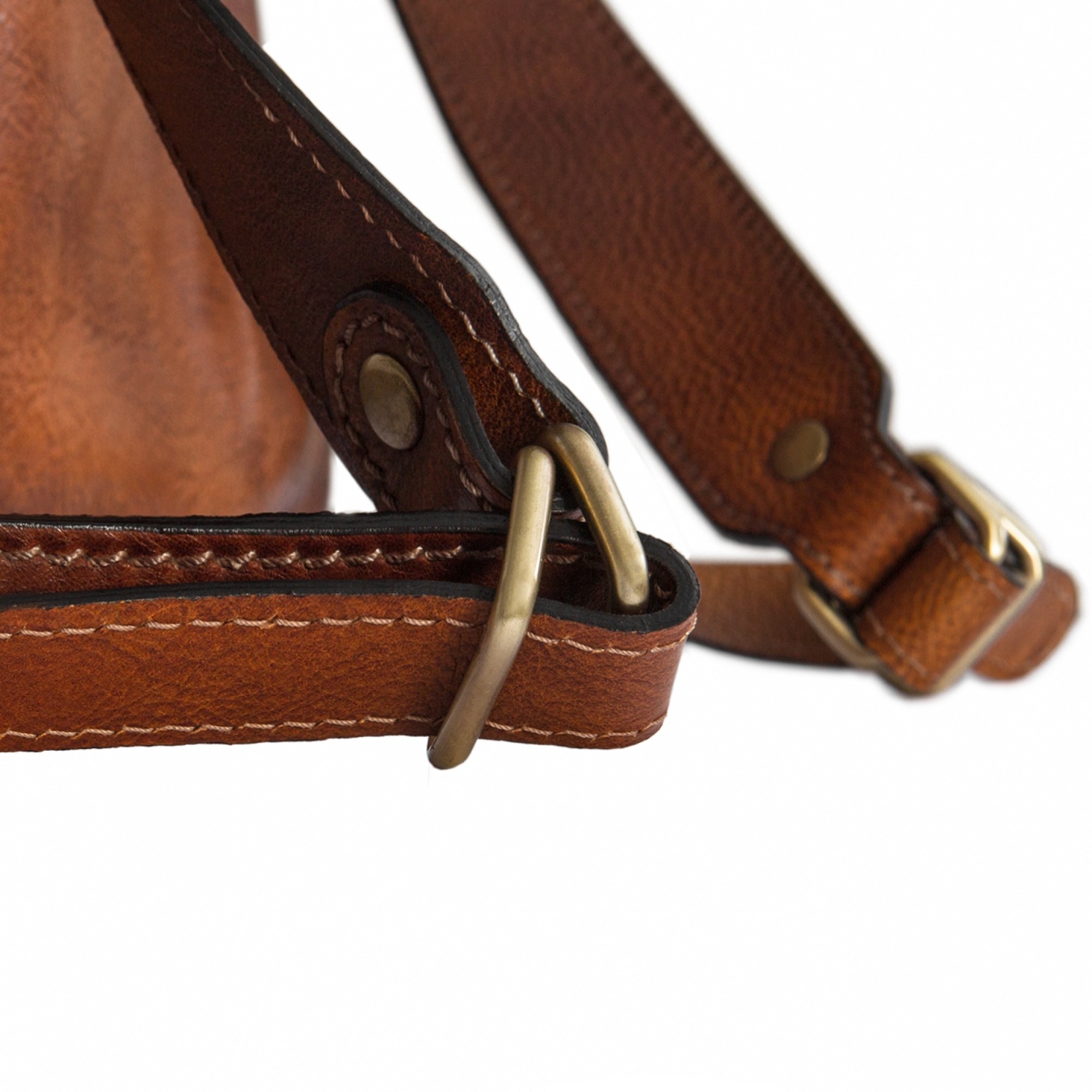 Refined and practical backpack made of light brown vegetable tanned Italian leather, made with a large internal space with a zippered pocket and LED light. On the front, a handy pocket to carry documents or smartphone.