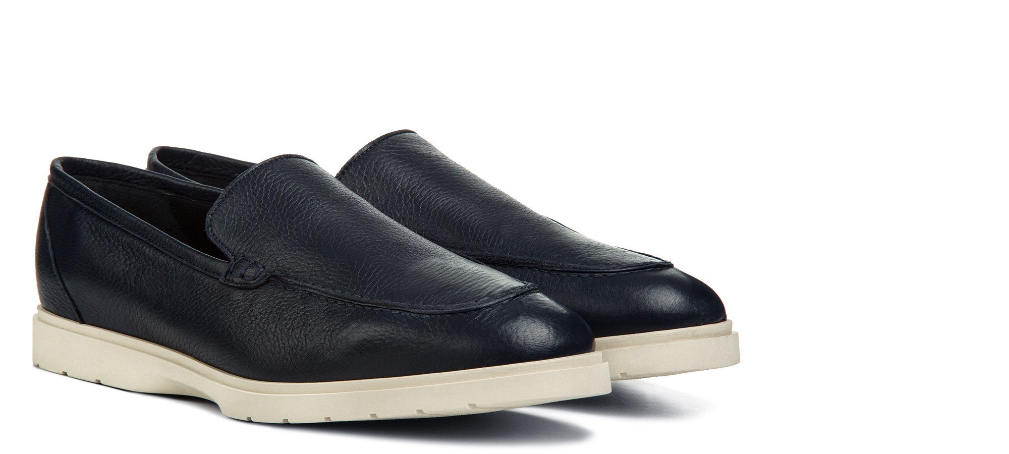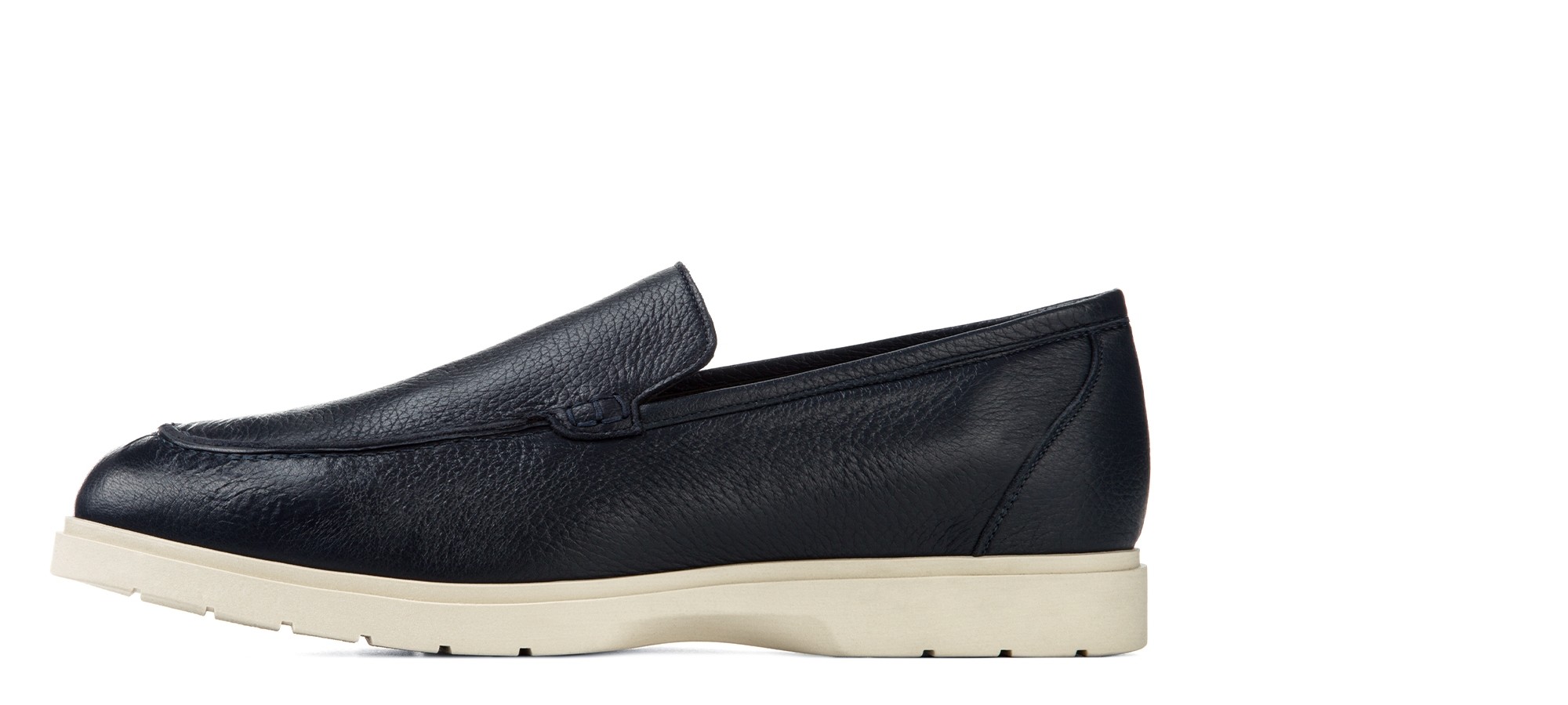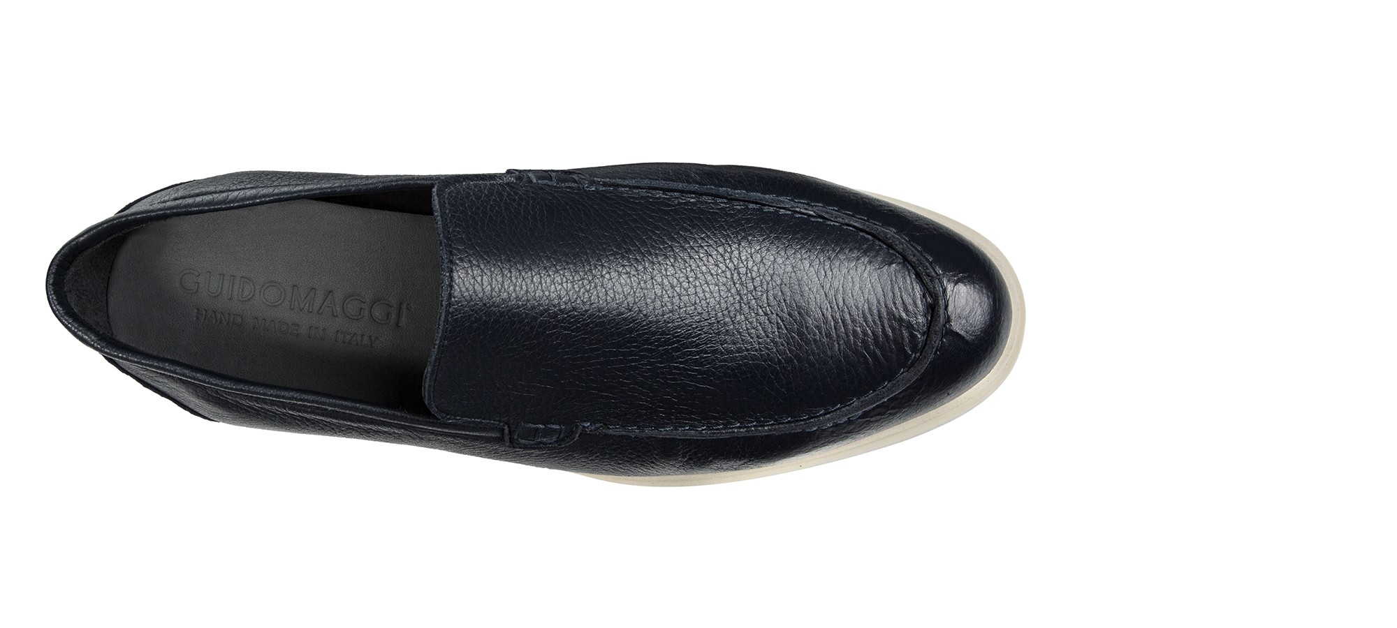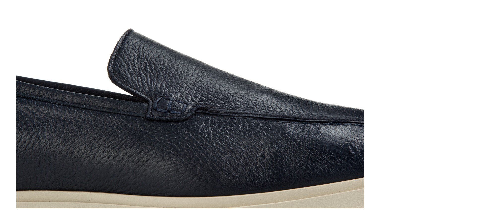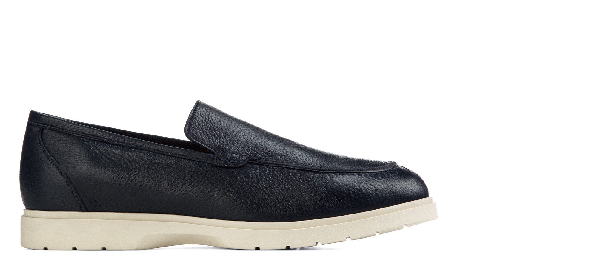 Elevator loafer in ultra-soft deerskin featuring a magnetic shade of blue. A masterpiece of lightweight quality and premium natural grain.