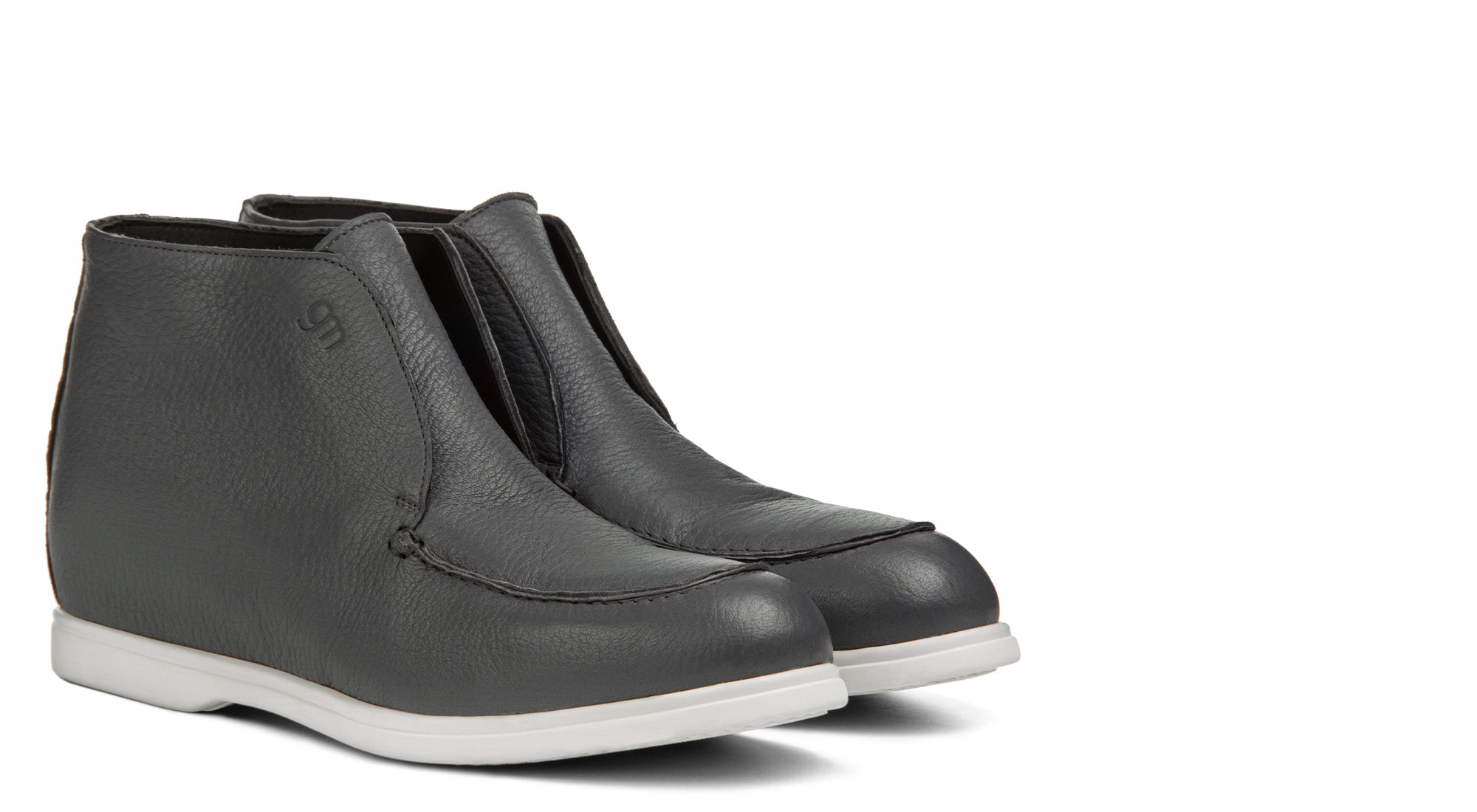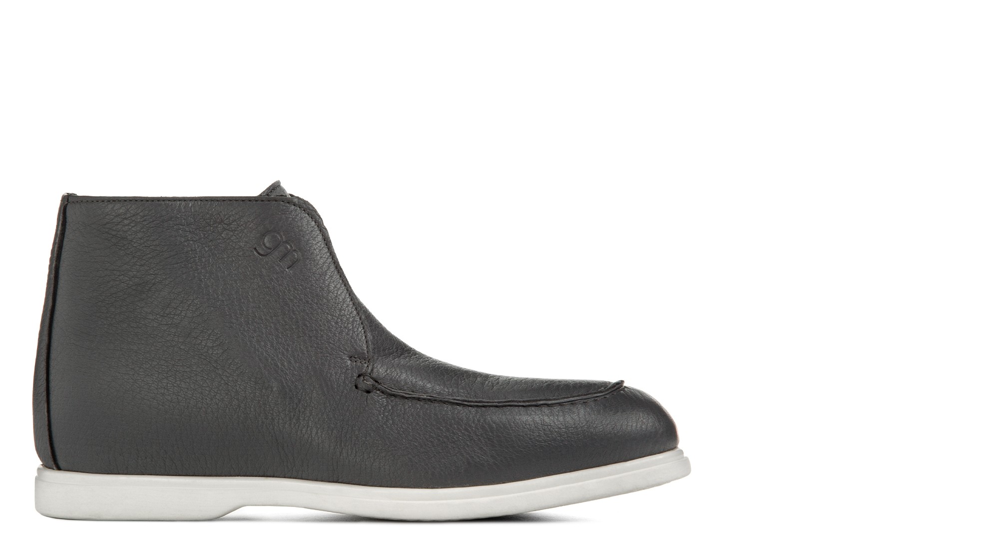 Ankle boot in ultra-soft grey deerskin, offering a refined and elegant look. The soft upper molds comfortably to the foot, while the calfskin lining provides breathability and comfort. A hidden elastic under the tongue ensures an easy, effortless fit.