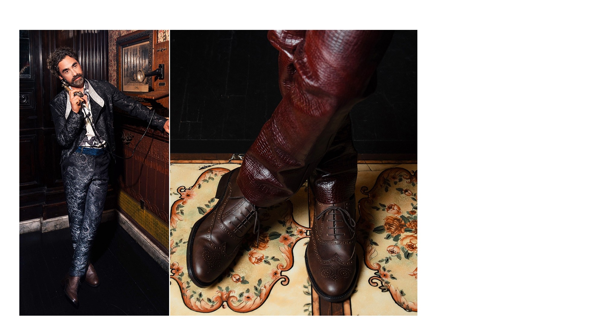 An elevator Francesina from the new GuidoMaggi collection, embellished by the English brogue, dovetail and flower on the tip. The stitching along the upper is expertly handcrafted to give craftsmanship and value to an iconic model that can't be missing from the wardrobe of the true contemporary gentleman. The elevator shoe is in leather, with a sophisticated shade of walnut brown. Extremely elegant, they are perfect to complete and enhance both casual and more formal looks. Featuring a leather sole with a lifting system adding up to 3.1" of extra height. 100% Made in Italy.