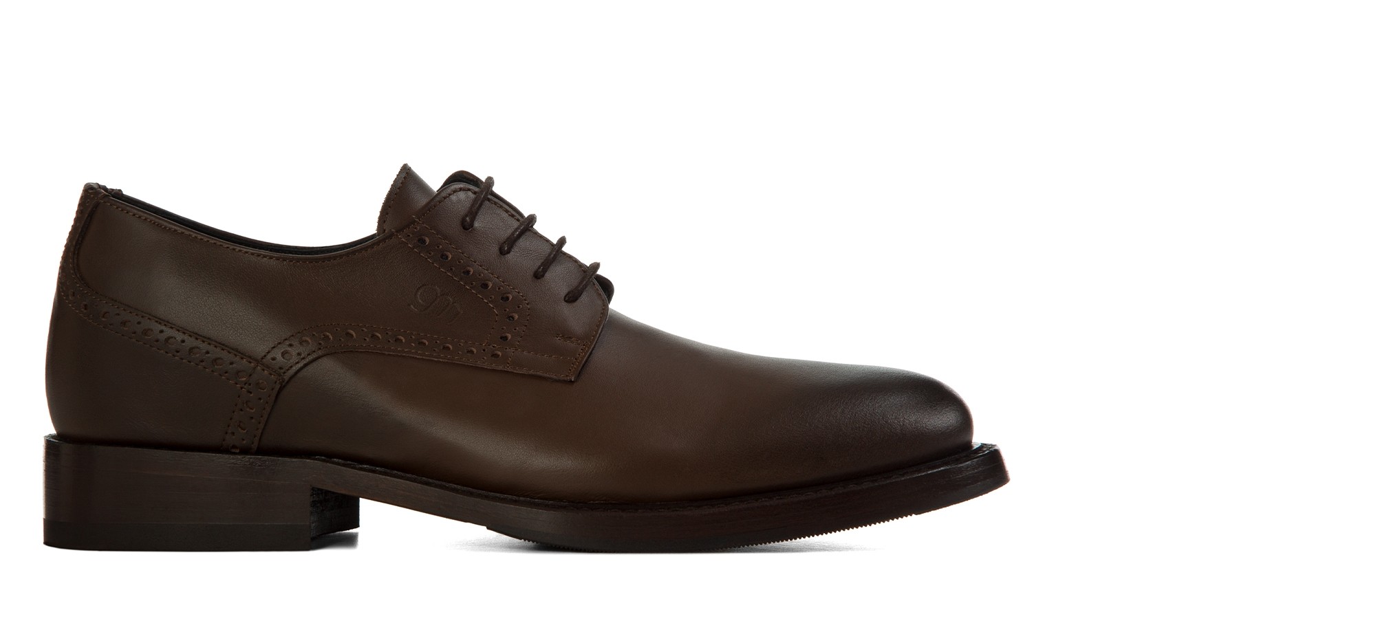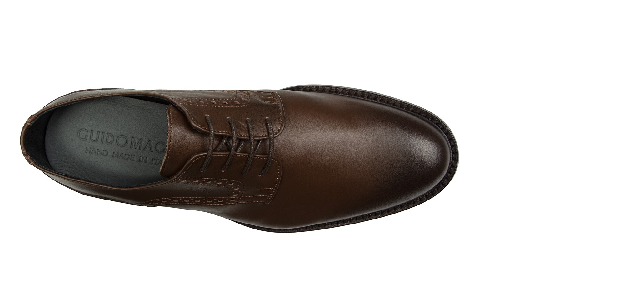 Sophisticated elevator derby in vegetable-tanned Tuscan leather in the exclusive tones of cognac. A unique model, made even more exclusive by the padding on the toe, made strictly by hand.