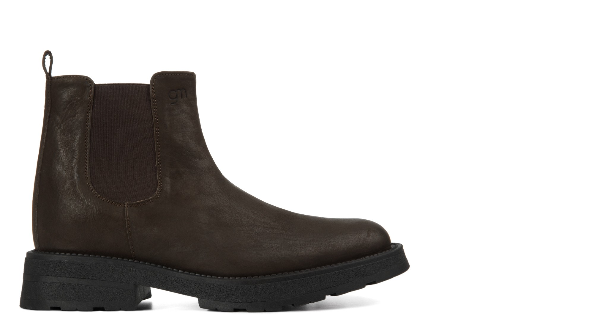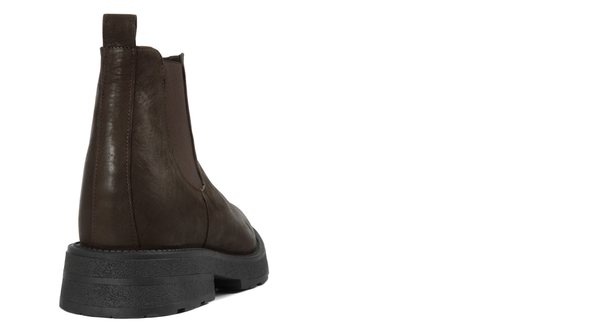 Chelsea elevator boots in full-grain nubuck leather upper, vegetable tanned, for a worn effect which gives it an urban and vintage style. A shoe with a soft and velvety surface, in warm shades of brown. It is equipped with a pull tab and a super light and anti-slip rubber sole.