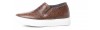 Handcrafted slip-on with 2.6 inches (6,5 Cm) elevator system featuring upper in brown calf leather printed crocodile and comfortable rubber sole.