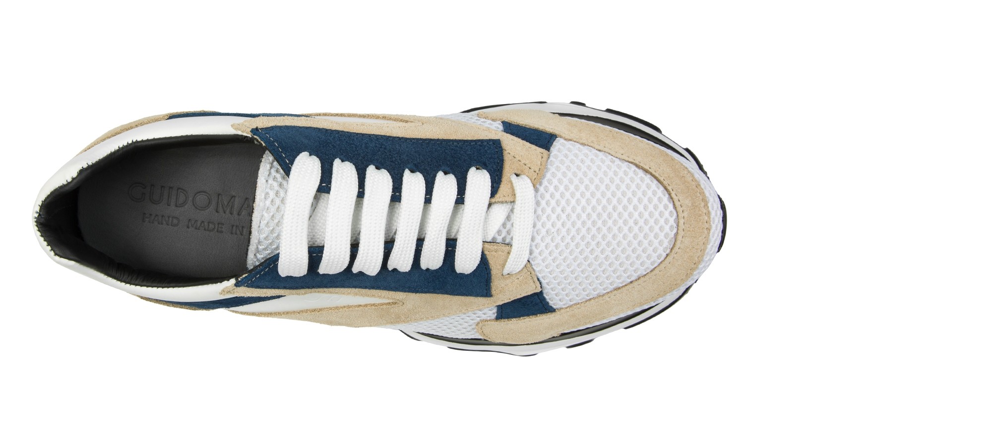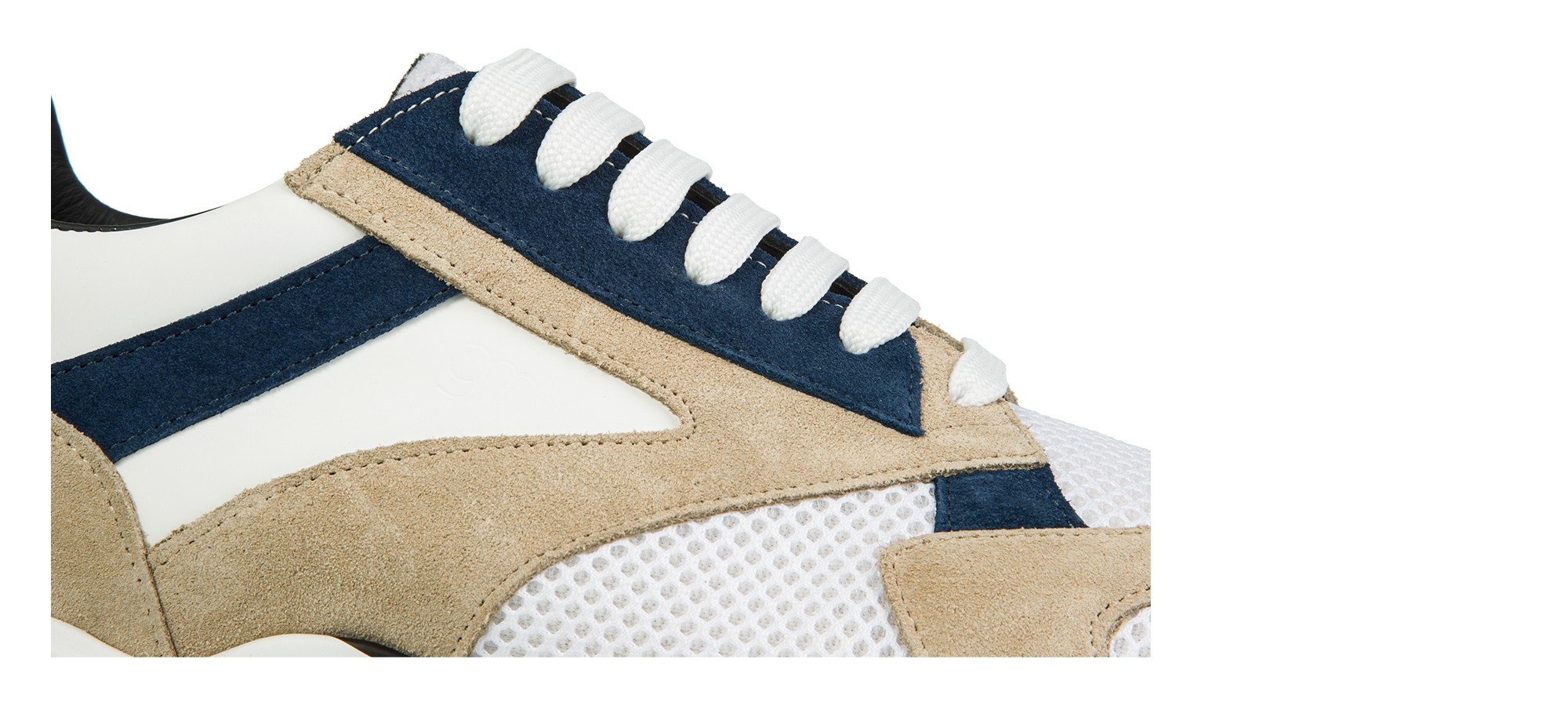 Handcrafted sneaker made in Italy with a breathable mesh upper and suede details.