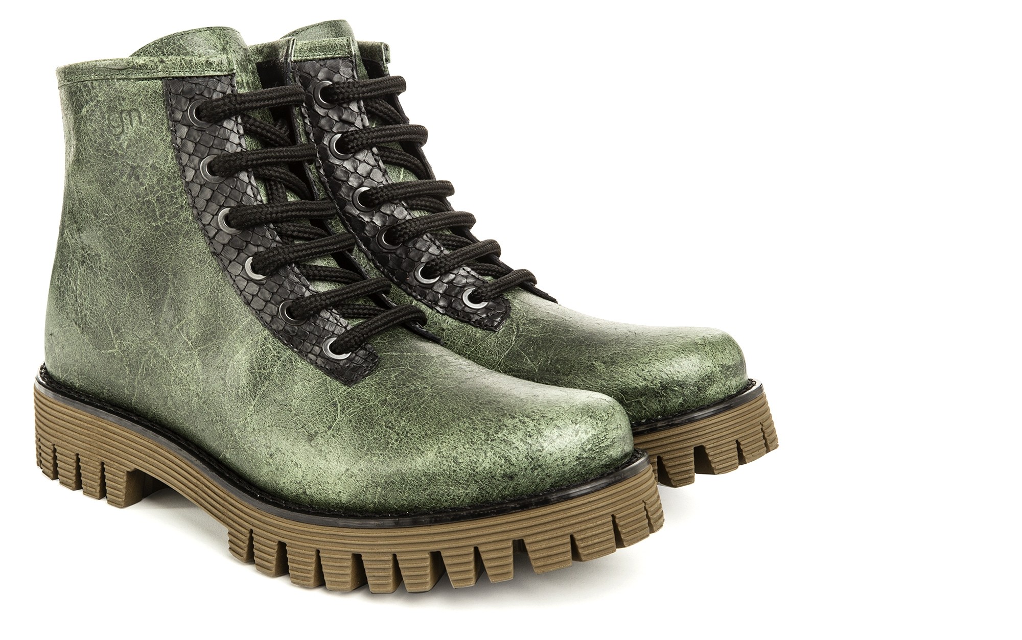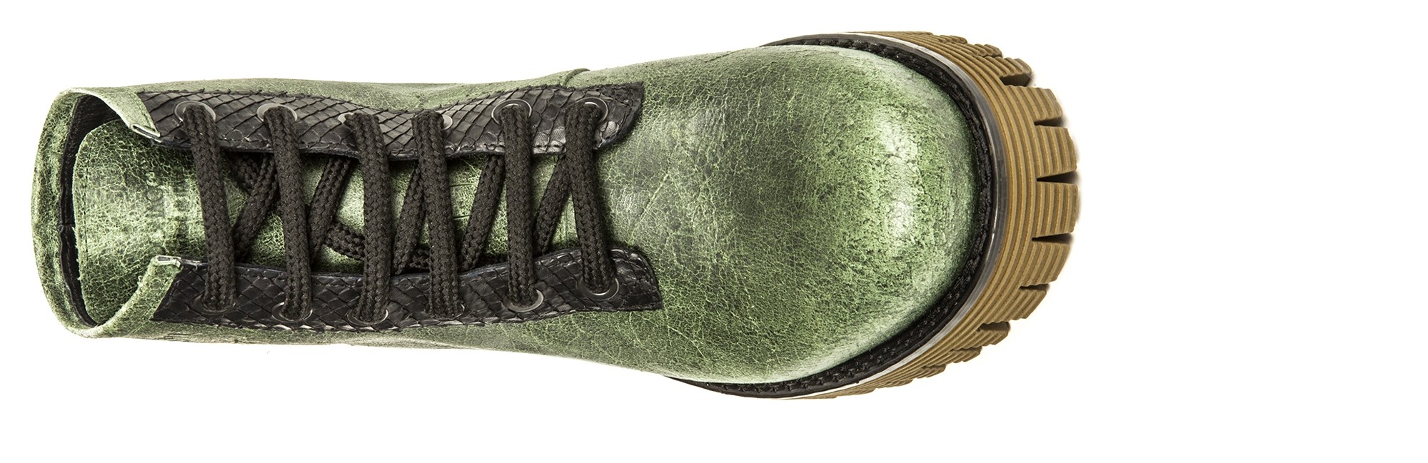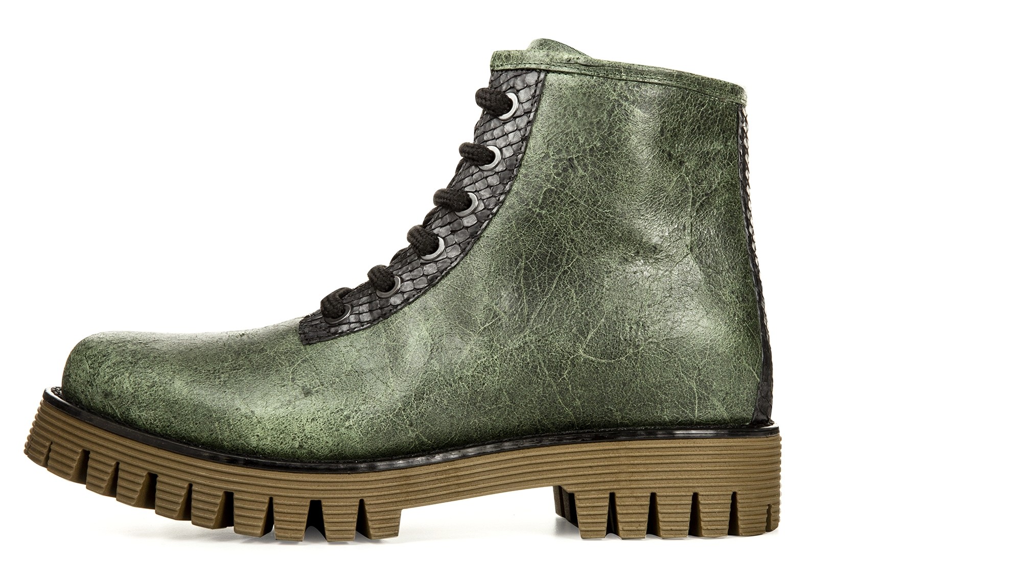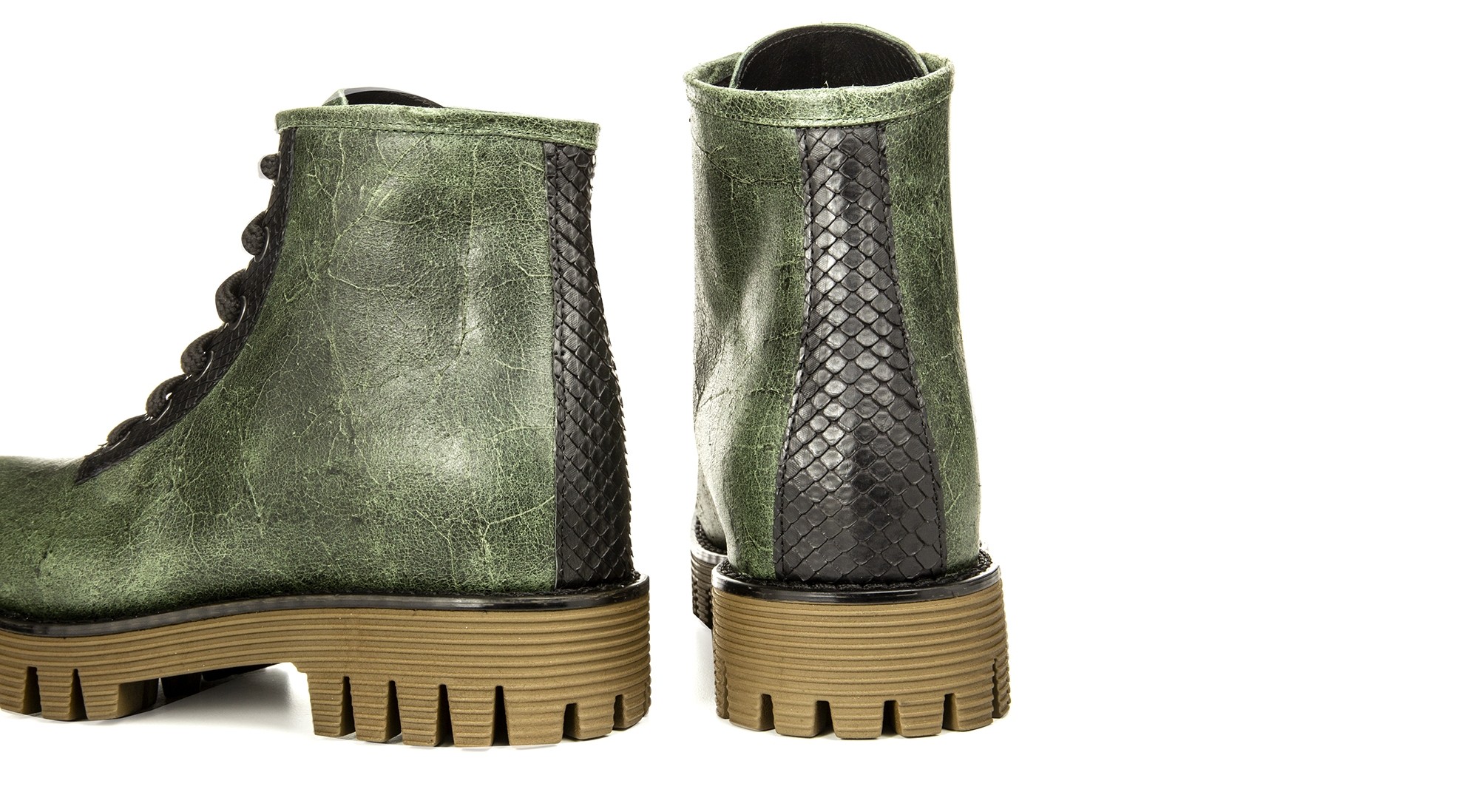 The green-coloured sole is a super-light rubber lug sole. It'll add up to 10 centimetres (4 inches) of extra height. 100% Handmade in Italy.