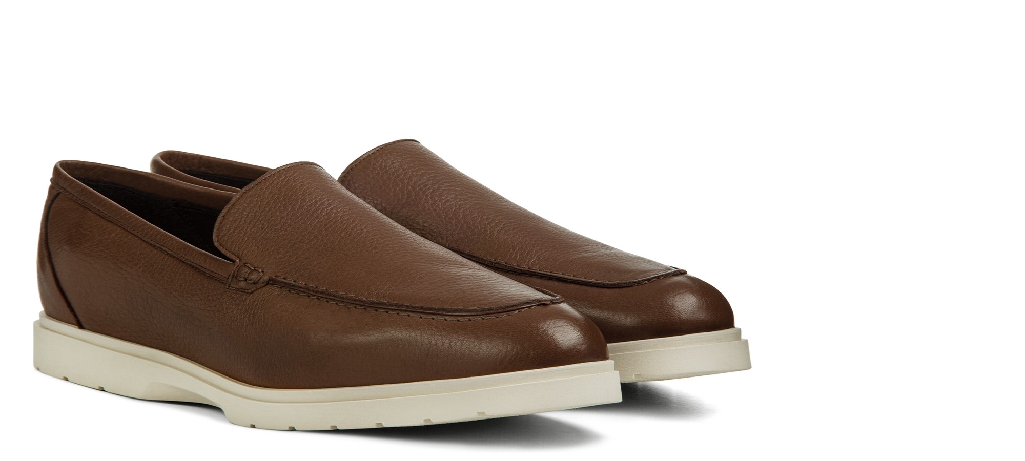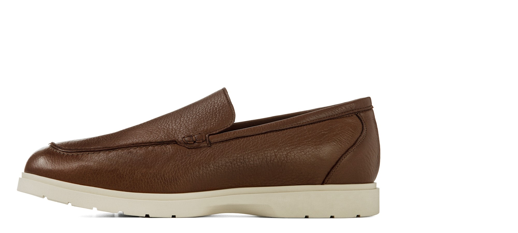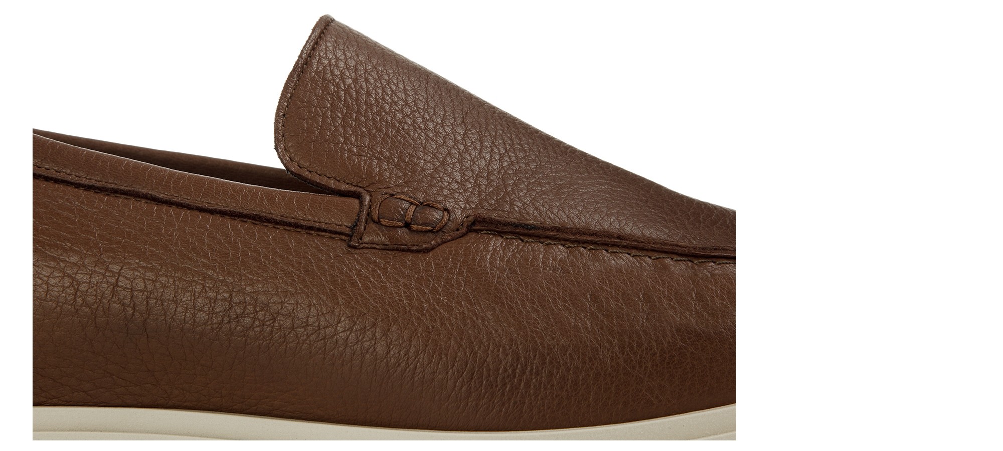 Premium handcrafted brown deerskin loafer featuring a beautiful and uniform natural grain. The leather's extraordinary flexibility ensures superior, long-lasting comfort.