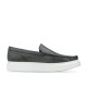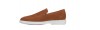 Elevator loafers declined in an exlusive orange nuance. The gray sole is made of natural rubber and the upper is in soft suede calfskin,. An elevator shoe featuring clean lines, with visible stitching, elegant and versatile, ideal to wear with any outfit.