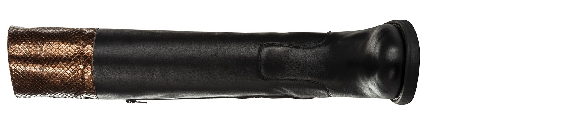 Entirely hand-sewn, this women's elevator boot by GuidoMaggi is a masterpiece of fine craftsmanship. The upper is in nappa calfskin, with sophisticated Hermes python details in rose gold on the upper band and above the heel to make the model even more breathtaking. A soft and highly comfortable sole that adds up to 3.1" of extra height and magnifies all the casual-chic looks of the season. 100% made in Italy.