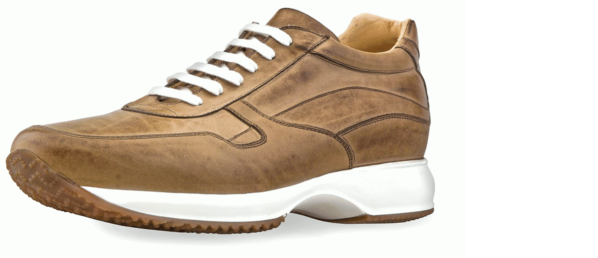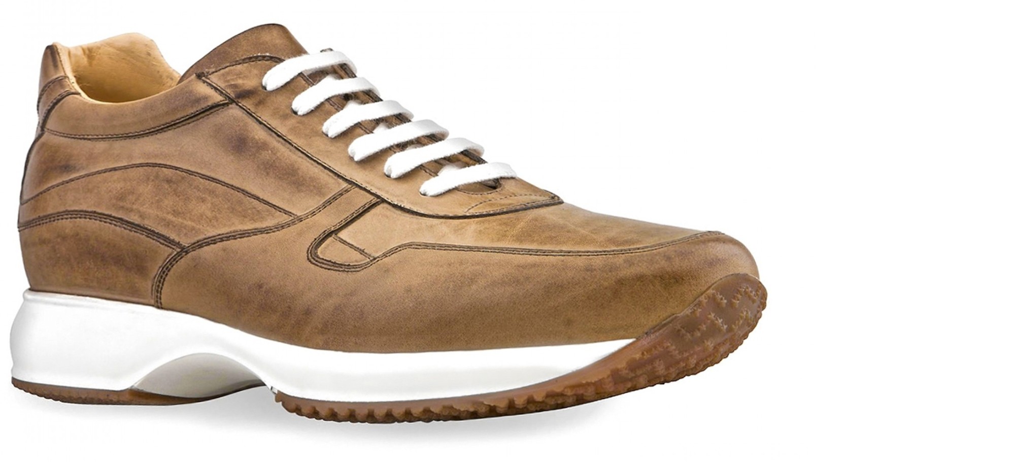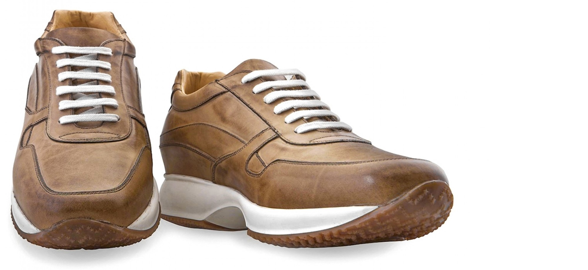 Upper in full grain leather light brown burnished. Lining in soft goatskin. Insole in genuine leather. 2 pairs of cotton shoe laces. Lightweight high quality rubber outsole anti-slip. Height increase: 2.4 inches(6cm), 2.75in(7cm), 3.1in(8cm) or 4 inches(10cm). Hand Made in Italy
