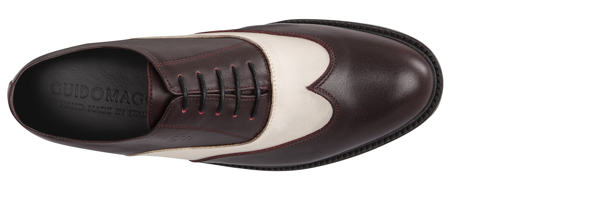 The elevator shoes from the new GuidoMaggi collection stands out for its two distinctive tones: the burgundy calfskin in contrast with the soft rose water dyed calf leather. A unique mix that gives elegance and exclusivity to a model entirely handmade by our master craftsmen. With a durable ultra-light rubber sole, Valdivia is extremely comfortable and adds up to 3.1 inches (8 cm) of extra height. The British style revisited and perfect for any sophisticated outfit.