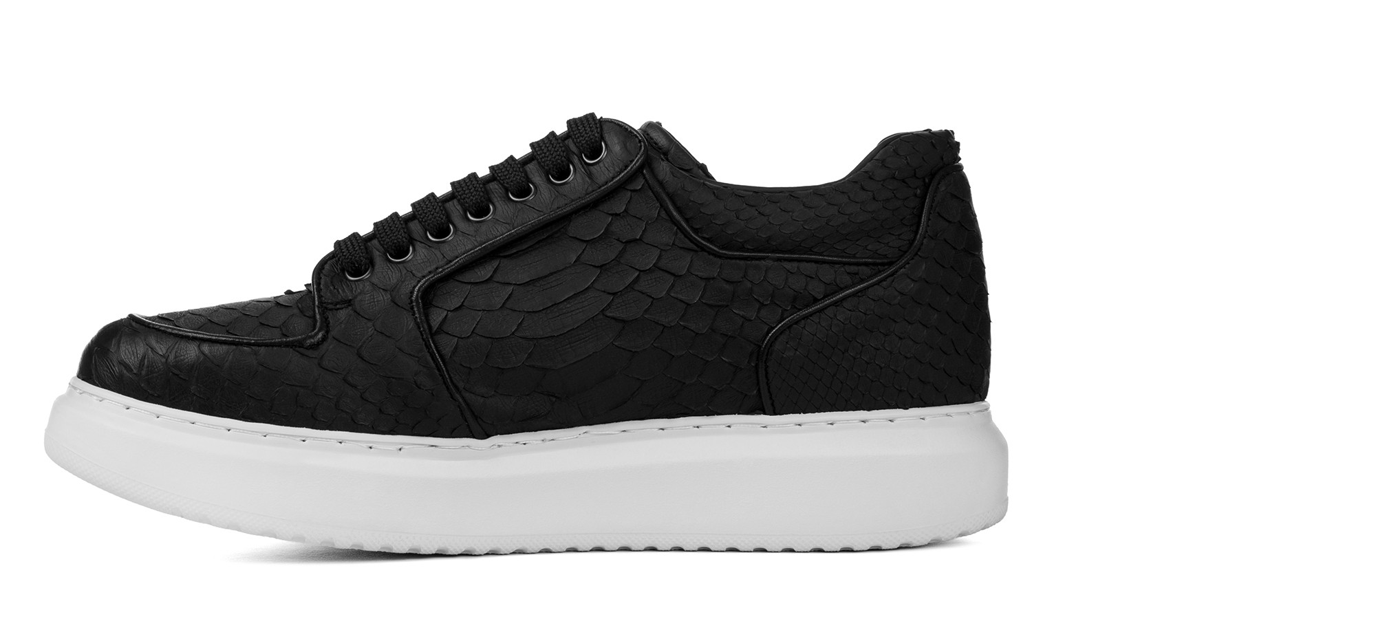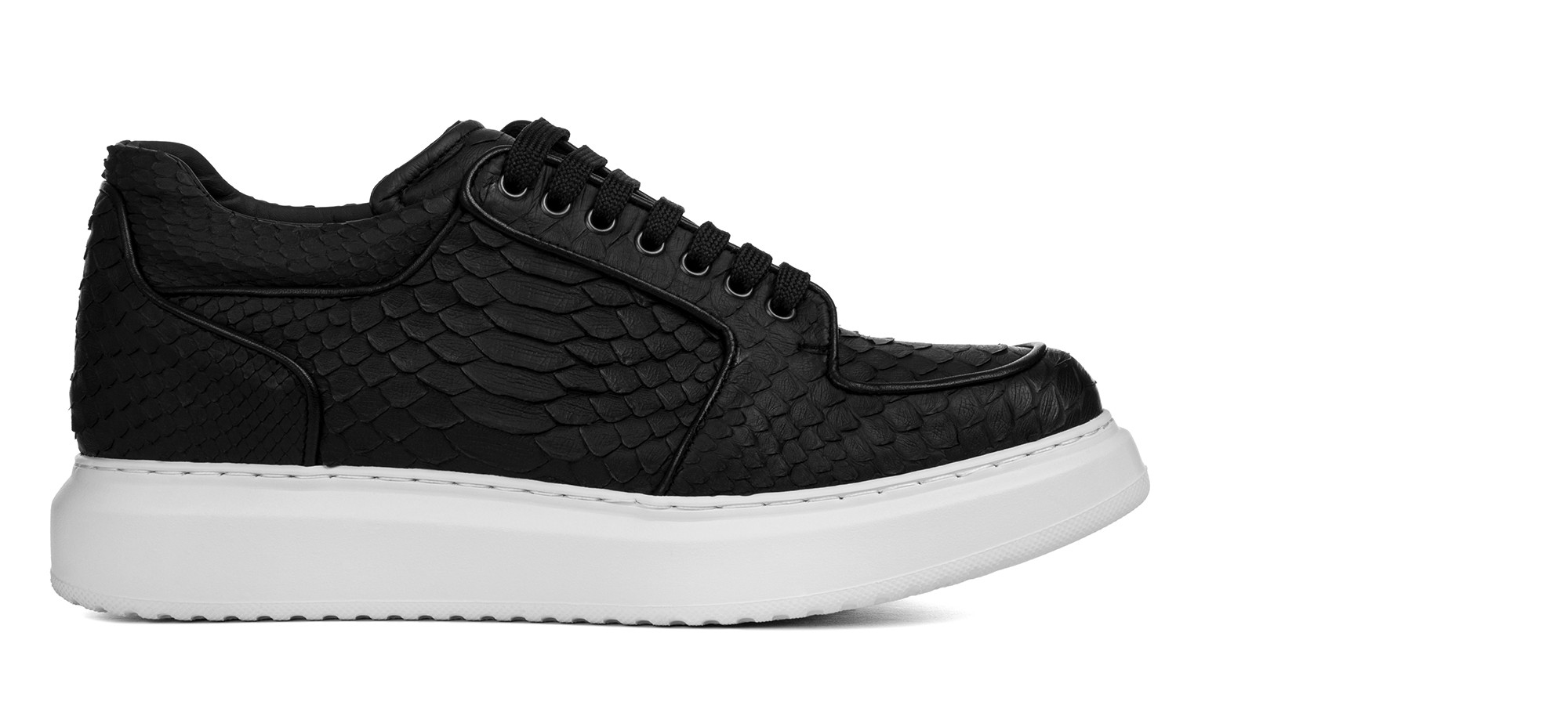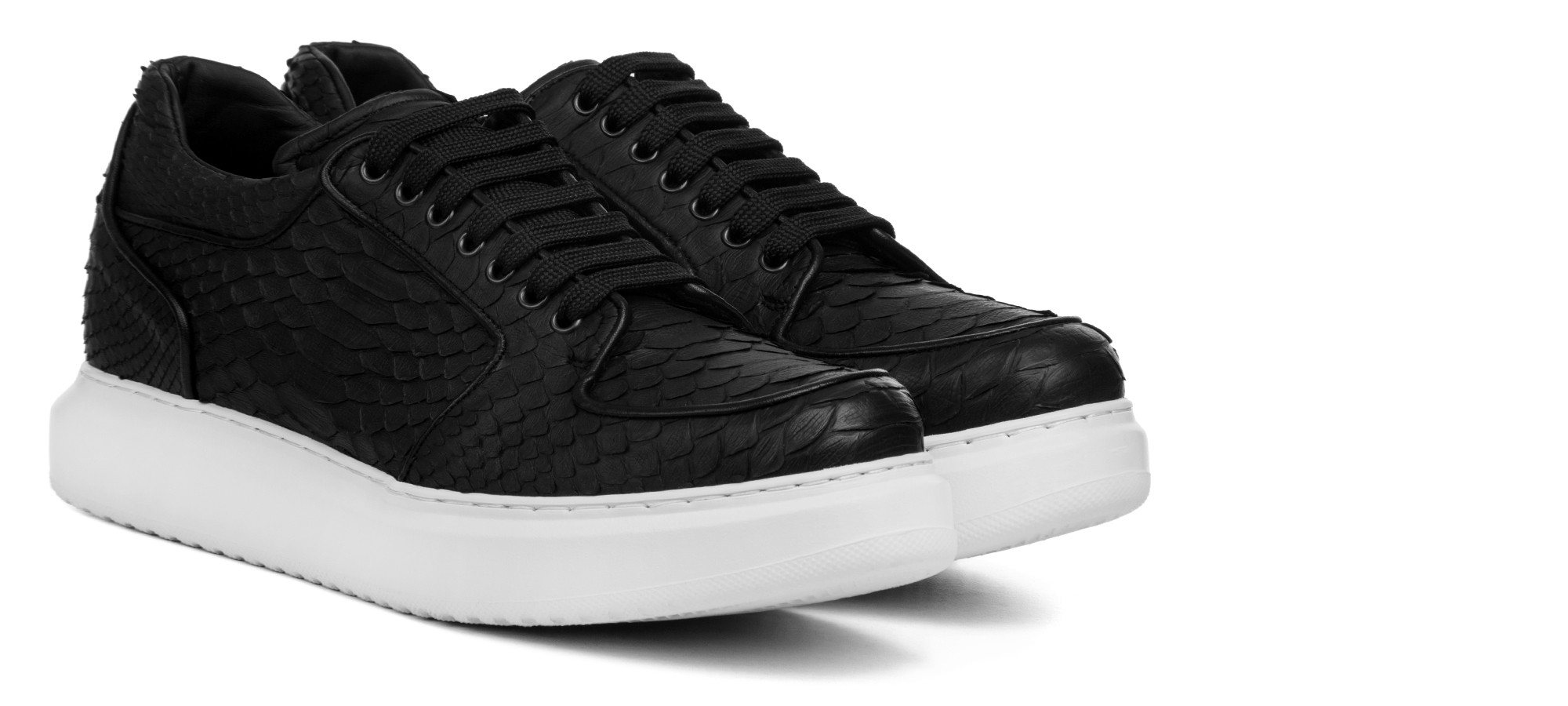 Handcrafted sneaker with a premium matte-effect rubberized python leather upper.